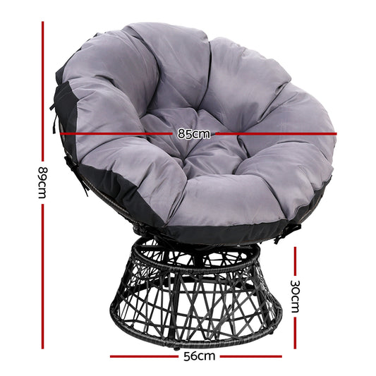 Gardeon Outdoor Chairs Outdoor Furniture Papasan Chair Wicker Patio Garden Grey