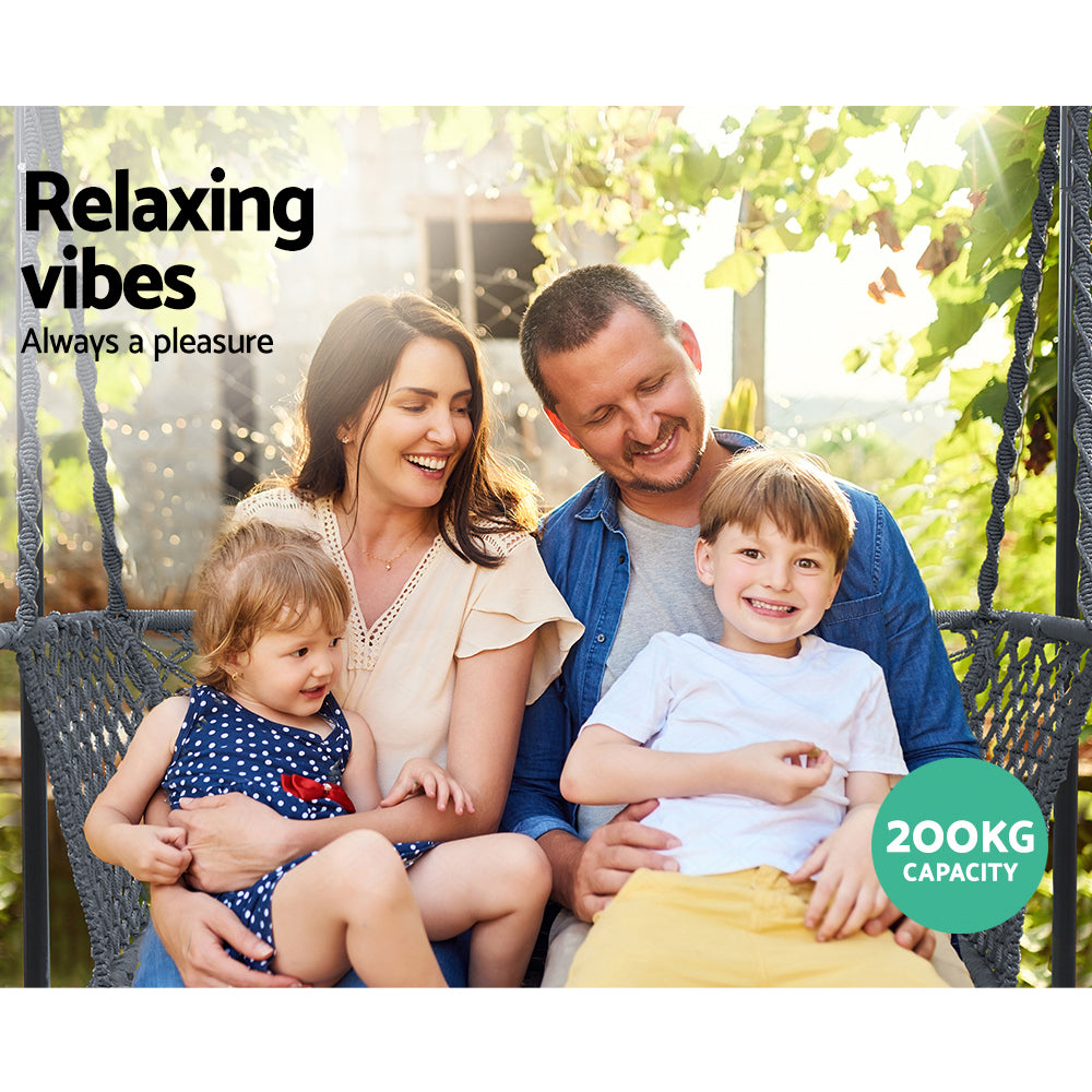 Gardeon Hammock Chair with Stand Macrame Outdoor Garden 2 Seater Cream
