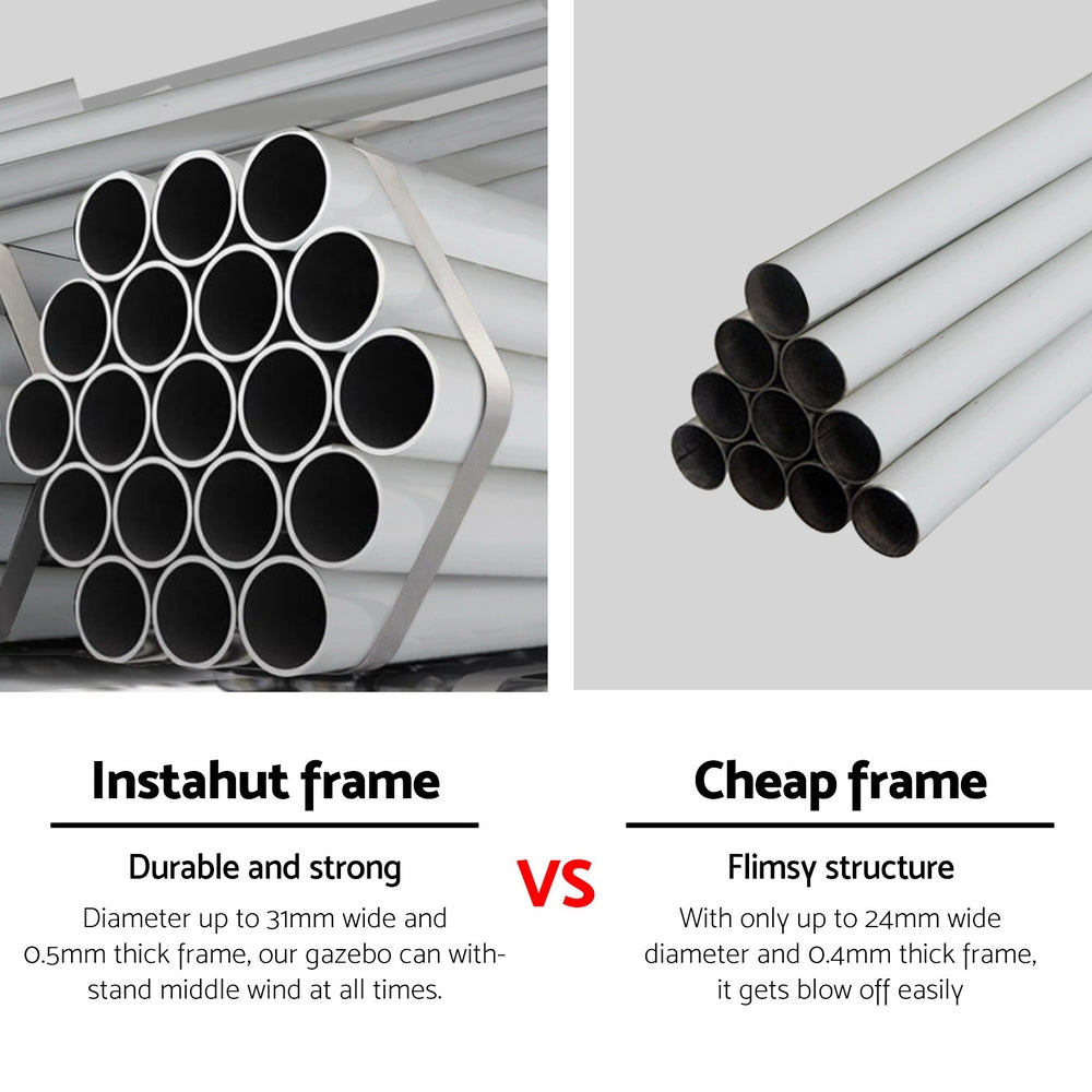 It's your big day and everything needs to be perfect, including the comfort of your guests. That's where Instahut comes to the rescue. The ideal solution for instant cover outdoors, our 300cm by 900cm wedding gazebo will ensure your guests are protected come rain or shine. Made from strong powder-coated metal tubing and covered with a 100PE UV and water-resistant canopy, the gazebo is built to last in a variety of weather conditions. With its quick and convenient Velcro attachments, you can set the gazebo up in minutes. The bonus carry bag allows you to store it away in your car boot, van, trailer, garage or shed until just the right moment. It also comes with bonus ropes and pegs so you can rest assured your canopy will last throughout the event. It's not just suitable for weddings – the gazebo is suitable for markets, sporting events, camping, yard sales, school events and trade shows. Enjoy the outdoors to the fullest with an Instahut Wedding Gazebo.