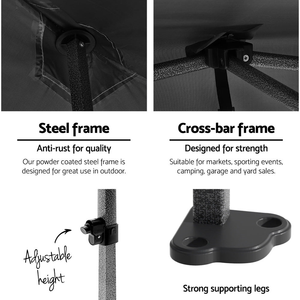 Instahut Gazebo Pop Up Marquee 3x3m Folding Tent Wedding Gazebos 500D Black