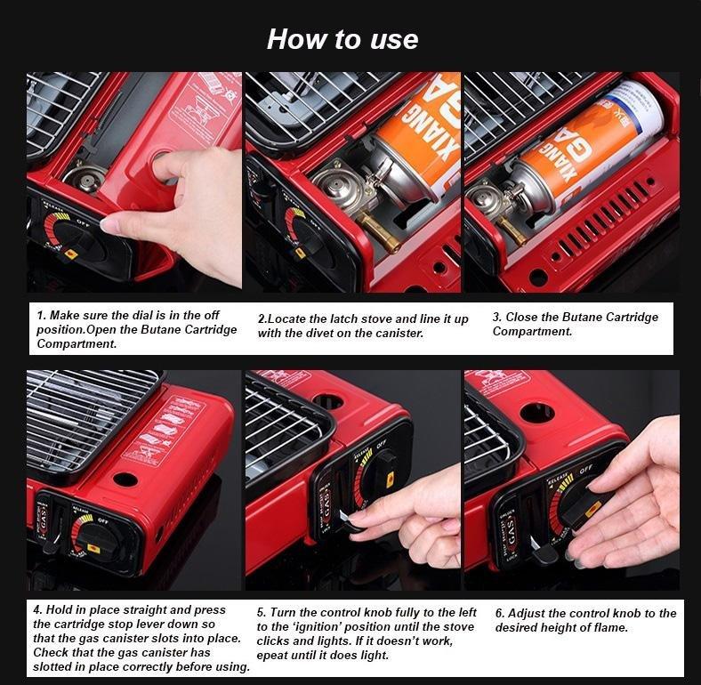 Portable Gas Stove Burner Butane BBQ Camping Gas Cooker With Non Stick Plate Red